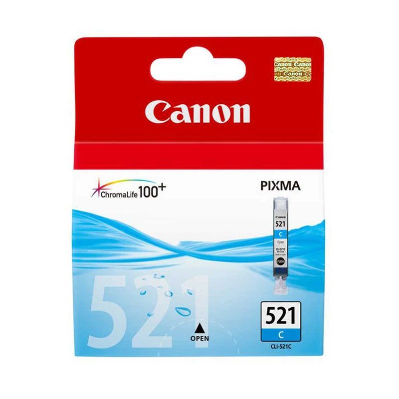 Canon CLI-521C cyan mavi mürekkep kartuş, Canon PIXMA yazıcılarla uyumlu, orijinal Canon kalitesiyle canlı ve net baskılar sunar.