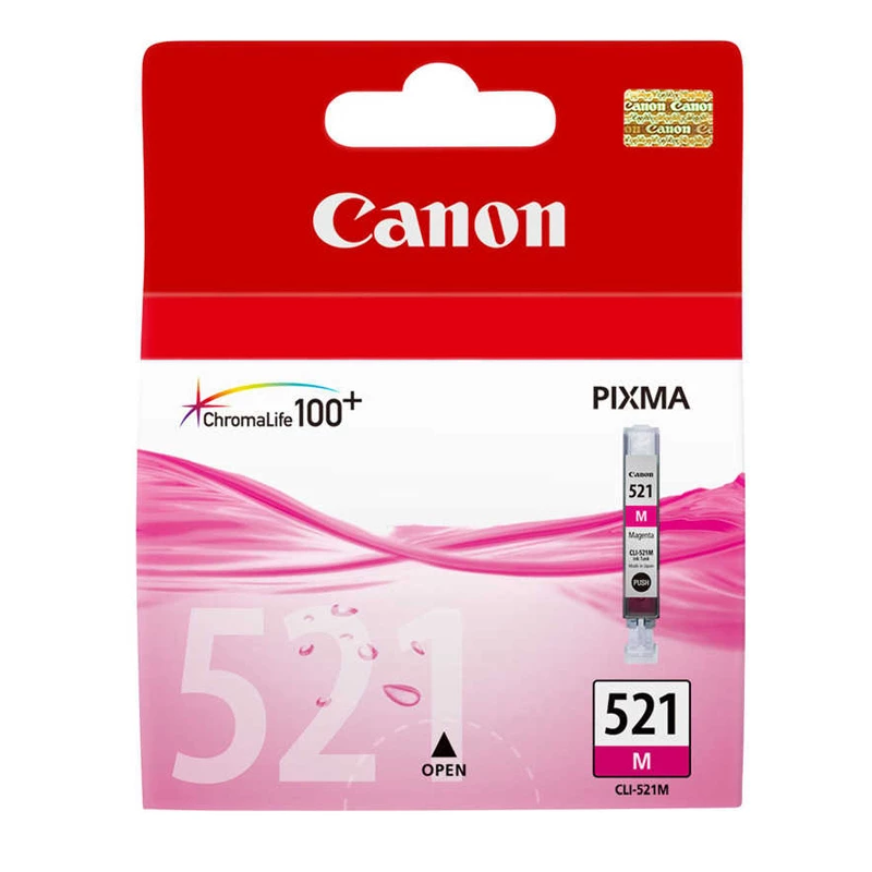 Canon CLI-521M magenta kırmızı mürekkep kartuş, Canon PIXMA yazıcılarla uyumlu, orijinal Canon kalitesiyle canlı ve net baskılar sunar.