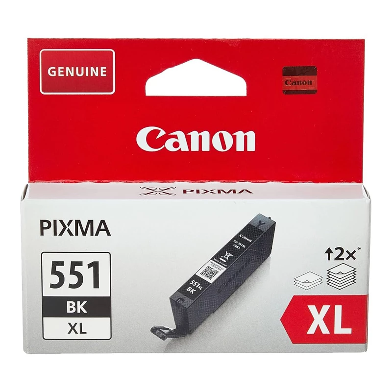 Canon CLI-551XL BK yüksek kapasiteli siyah mürekkep kartuş, Canon PIXMA yazıcılar için uzun ömürlü ve profesyonel baskı performansı sunar. Metin ve fotoğraflarda keskin sonuçlar için ideal.