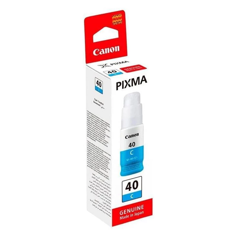 Canon GI-40C cyan mavi şişe mürekkep, orijinal Canon kalitesi ile canlı ve keskin mavi tonlar sağlar. Geliştirilmiş formülü sayesinde baskılarda renk solması veya bulaşma oluşmaz.
