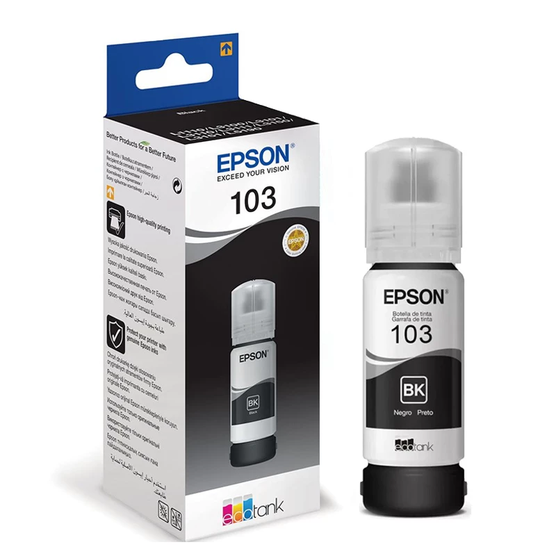 Epson 103 Black (Siyah) Orijinal Mürekkep Şişesi, EcoTank yazıcı serisi için özel olarak tasarlanmıştır.