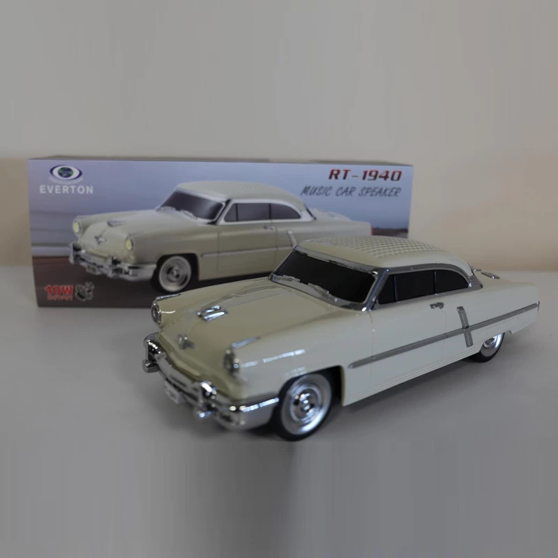 EVERTON RT-1940 bej nostaljik radyo, Bluetooth, USB, TF kart ve AUX desteği ile çok yönlü kullanım sunar. Şarjlı bataryası, FM radyo özelliği ve retro araba tasarımıyla taşınabilir, dekoratif ve işlevsel bir üründür.