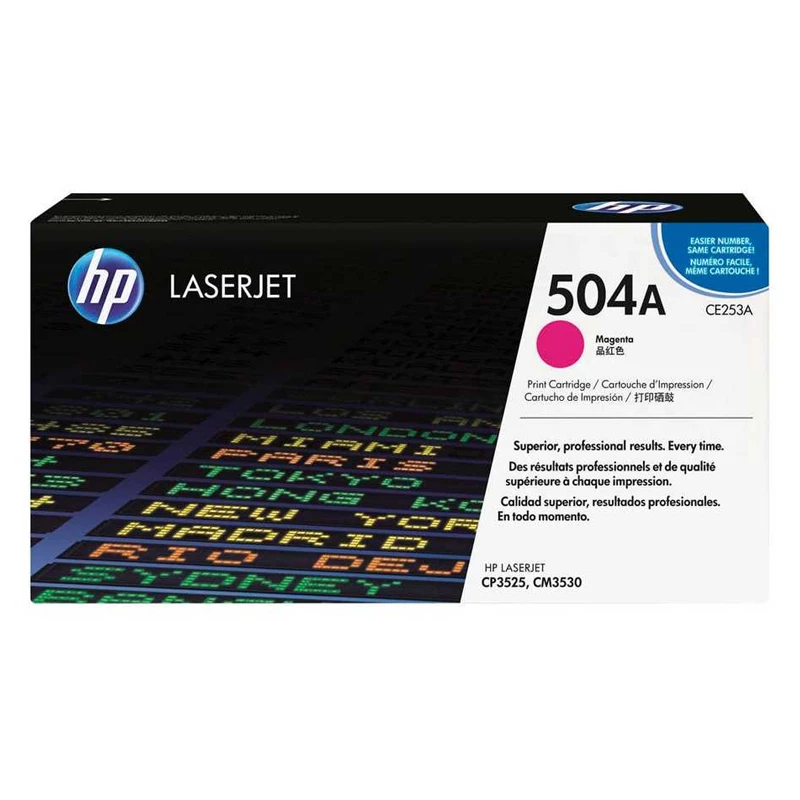 HP 504A Magenta (Kırmızı) toner CE253A, 7.000 sayfa baskı kapasitesi ve profesyonel renk kalitesi sunar. HP Color LaserJet yazıcılar için orijinal toner.