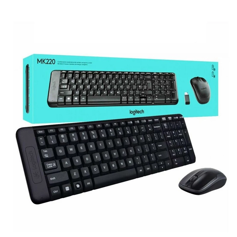 Logitech MK220 kablosuz klavye mouse set, kompakt tasarımı, güçlü 2.4 GHz bağlantısı ve uzun pil ömrü ile ev ve ofis kullanımına uygundur. Taşınabilir, dayanıklı ve kolay kurulum sunan ekonomik bir kablosuz set.